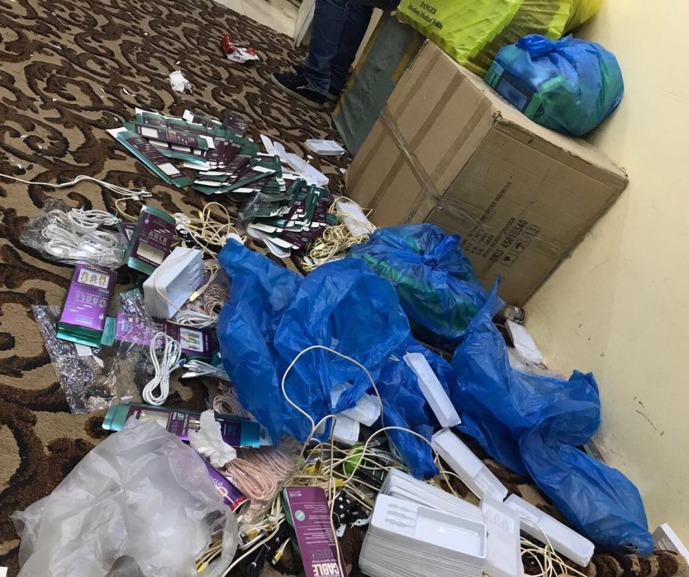 ضبطت وزارة التجارة خلال جولاتها التفتيشية بالتعاون مع الحملات الأمنية بالرياض، 100 ألف توصيلة وأفياش كهربائية غير مطابقة، و14 ألف إكسسوارات جوال مقلدة.