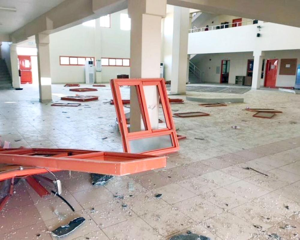 المدرسة بعد إطلاق صاروخ عليها أمس.
