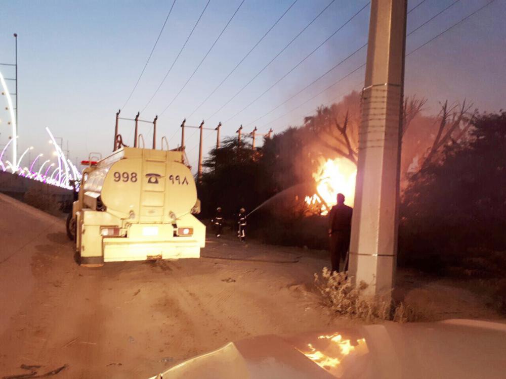 النيران تلتهم الأشجار الكثيفة على الطريق الدولي بمحافظة بيش.
