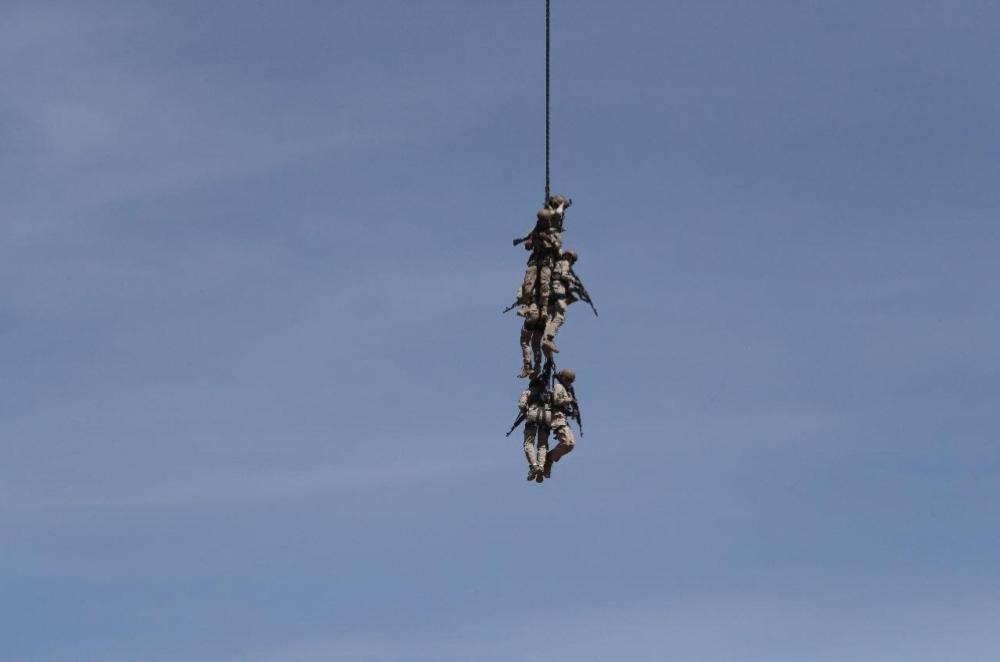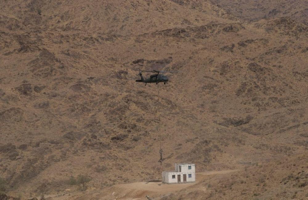 بعد ذلك قامت طائرات التايفون التابعة للقوات الجوية الملكية السعودية وطائرات الأباتشي التابعة لطيران القوات البرية بغارة على موقع معادي وحماية طائرات قوة الاقتحام من نوع "بلاك هوك"، ثم اقتحم الجنود الموقع وقاموا بتطهيره وأسر قياديين، واختتمت العملية بانتشال القوة المنفذة للتمرين.