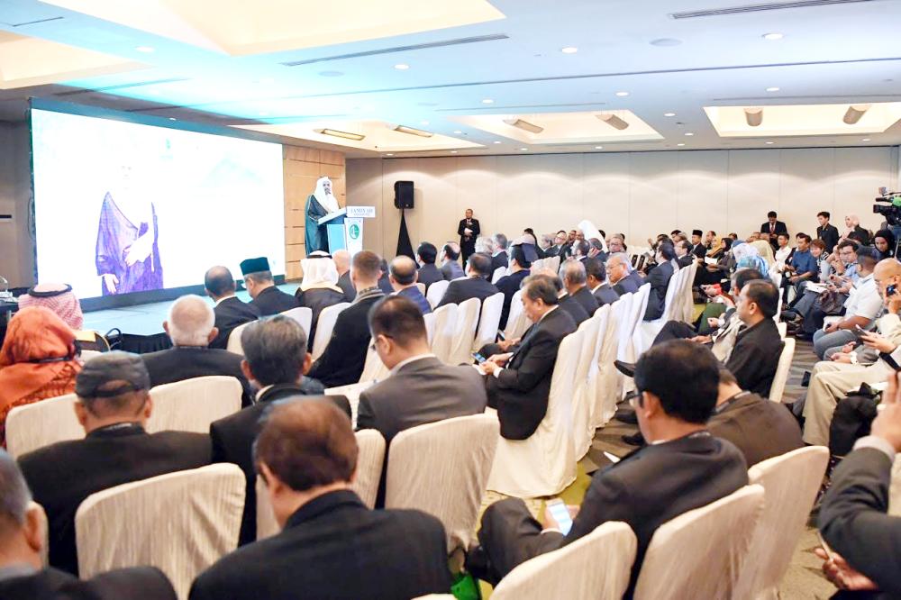 بعد ذلك ألقى الأمين العام لرابطة العالم الإسلامي الشيخ الدكتور محمد بن عبدالكريم العيسى كلمة أشاد فيها باللقاء الذي تنظمه مؤسستان إسلاميتان عريقتان بإرساء معايير الوسطية والاعتدال والتسامح والتعايش، ونشر ذلك حول العالم، معبرا عن سعادته باسم رابطة العالم الإسلامي بزيارة سنغافورة ومجتمعها الذي ضرب الأنموذج المتميز في التعايش والتسامح والوئام المجتمعي، وشكل بتنوعه وتعدده نموذجاً عالمياً يحتذى به، مؤكدا تبني الرابطة وفق رؤيتها المتجددة برامج توجيه الوعي الإنساني نحو المزيد من التفاهم، وبناء مجتمعات بشرية متعايشة، تربطها قيم التعاون والتسامح، وتجمعها روابط التواصل الحضاري، التي من خلالها تتمكن الأسرة الإنسانية الواحدة من تجاوز عقبات أعداء التعايش والتواصل بين أتباع الحضارات والثقافات والأديان، عبر تعزيز ثقافة التواصل والسلام.