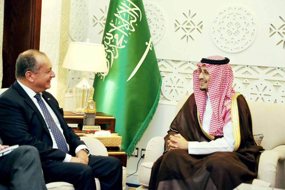 الأمير أحمد بن فهد مستقبلا سايمون كوليس. (عكاظ)
