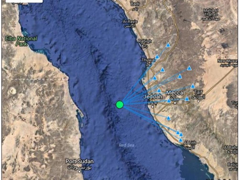 وأضاف أن وسط البحر الأحمر نشط زلزاليا ولكن الموجات الزلزالية المنتشرة من هذه الزلازل تصل ضعيفة للمدن المطلة على البحر الأحمر، إذ إن معظم هذه الهزات تتركز في منطقة تقع في وسط البحر الأحمر على مسافة أكثر من 200 كم إلى الجنوب من مدينة جدة، وبلغ أعلى مقدار لها 5.6 ريختر، وهي تحدث عند منخفض سواكن المقابل لمدينة بورت سودان الساحلية في السودان، وهي إحدى البحيرات العميقة الغنية بالمحاليل الملحية الساخنة والموجودة في وسط البحر الأحمر مثل بحيرتي اتلانتيس وديسكفري.