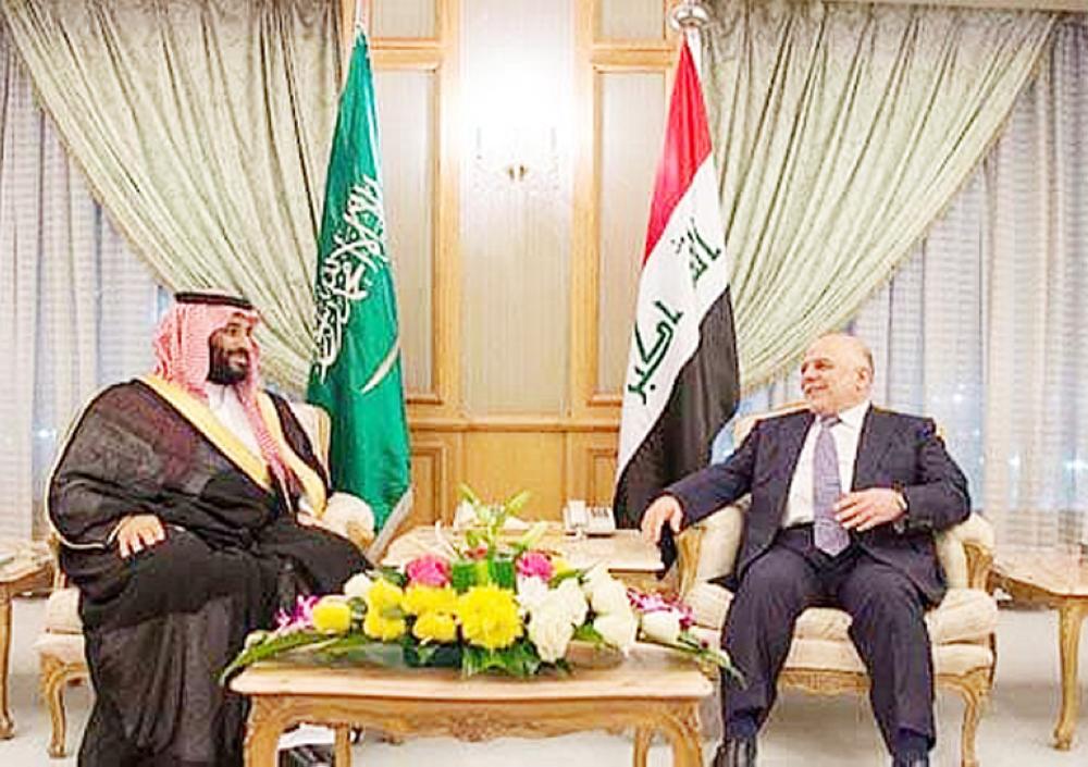 ولي العهد مستقبلا العبادي خلال زيارة سابقة للمملكة. (عكاظ)