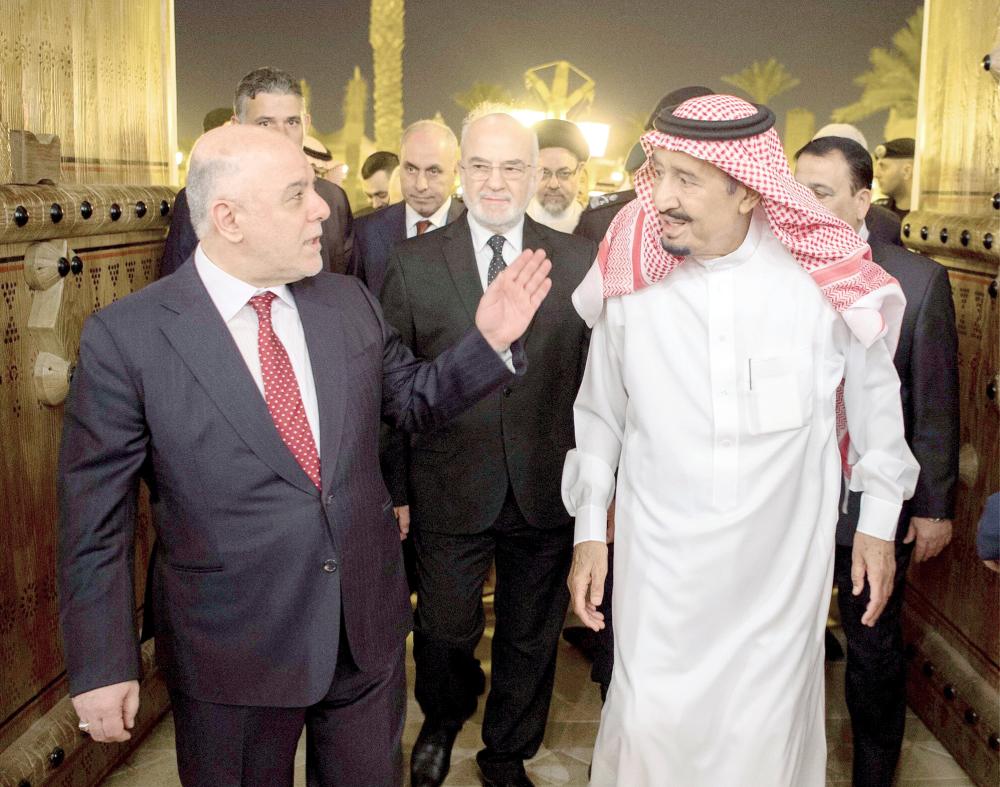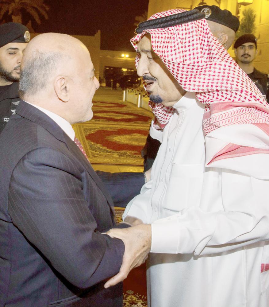 ورحب الملك سلمان برئيس الوزراء العراقي والوفد المرافق له في المملكة، فيما أعرب العبادي عن سعادته بلقاء خادم الحرمين الشريفين، الذي أقام مأدبة عشاء تكريما له والوفد المرافق.