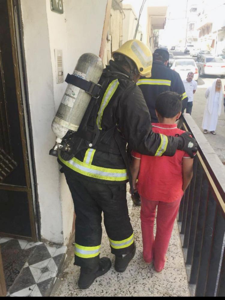إنقاذ طفل من حريق حي الخالدية بخميس مشيط.