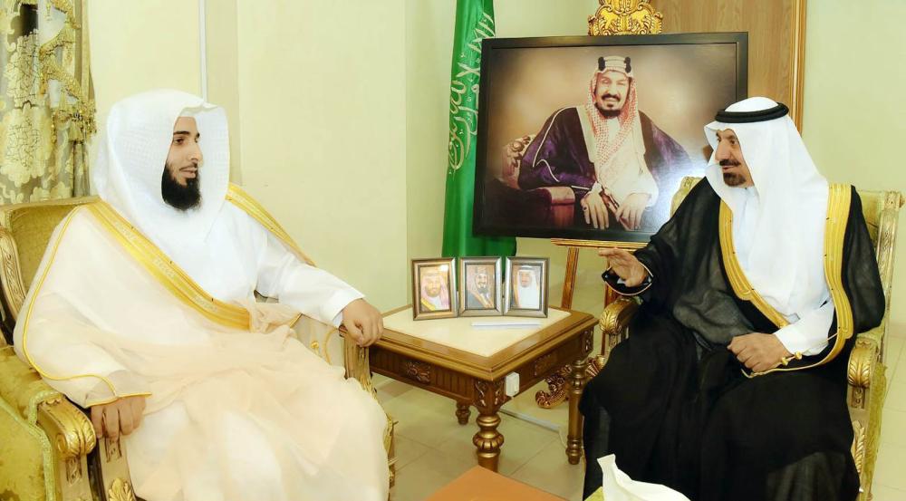 أمير نجران أثناء استقباله آل طالب. (عكاظ)