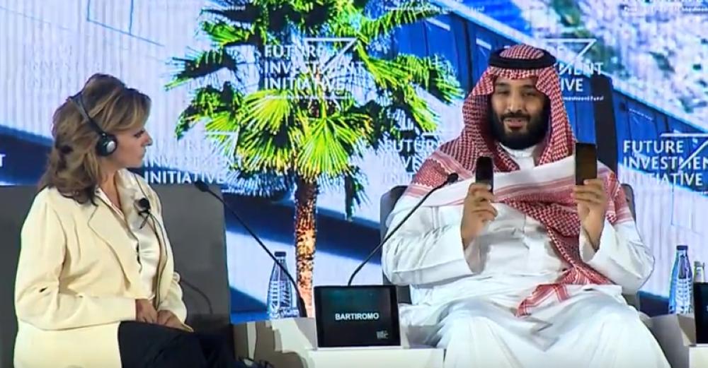 ضجت القاعة بالتصفيق عندما أخرج ولي العهد الأمير محمد بن سلمان من جيبه هاتفا قديماً وهاتفا ذكياً بنظام متطور، ليوضح الفرق في رؤيته بين منطقة المستقبل «نيوم» والمدن الحالية، وذلك خلال «حوار نيوم مع ولي العهد» الذي بدأ قبل قليل.