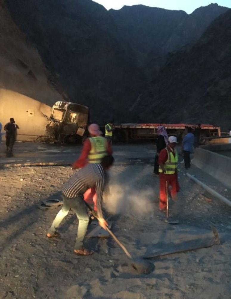 وقال المتحدث الرسمي لمديرية الدفاع المدني بمنطقة عسير العقيد محمد عبدالرحيم العاصمي أن فرق الدفاع المدني باشرت إخماد الحريق والتأكد من عدم وجود أي احتجاز وتم التمركز في الموقع حتى ُرفعت الحالة فيما باشرت فرق النظافة بأمانة عسير تنظيف الموقع من تسرب الوقود المنسكب على الطريق ولم يصاحبه إصابات أو وفيات ولله الحمد.