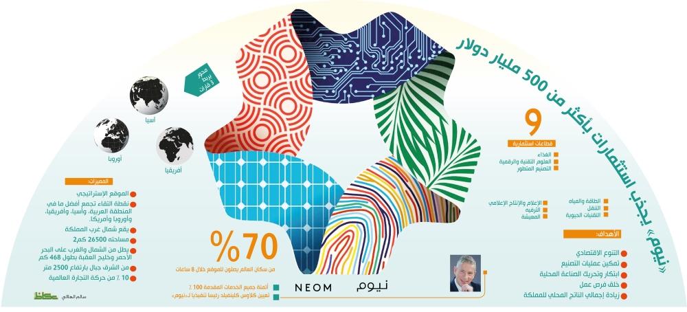 ويساهم مشروع «نيوم» في إنجاز رؤية المملكة 2030، عبر محاورها الثلاثة (مجتمع حيوي، وجهة في صدارة مؤشر أفضل مدن العالم ملاءمةً للعيش، وتطوير القطاعات الإعلامية والرقمية التي تساهم في الناتج المحلي الإجمالي للمملكة، والرؤية الحضرية الواعدة لتصبح الوجهة الأكثر استقطاباً للمواهب السعودية والدولية).