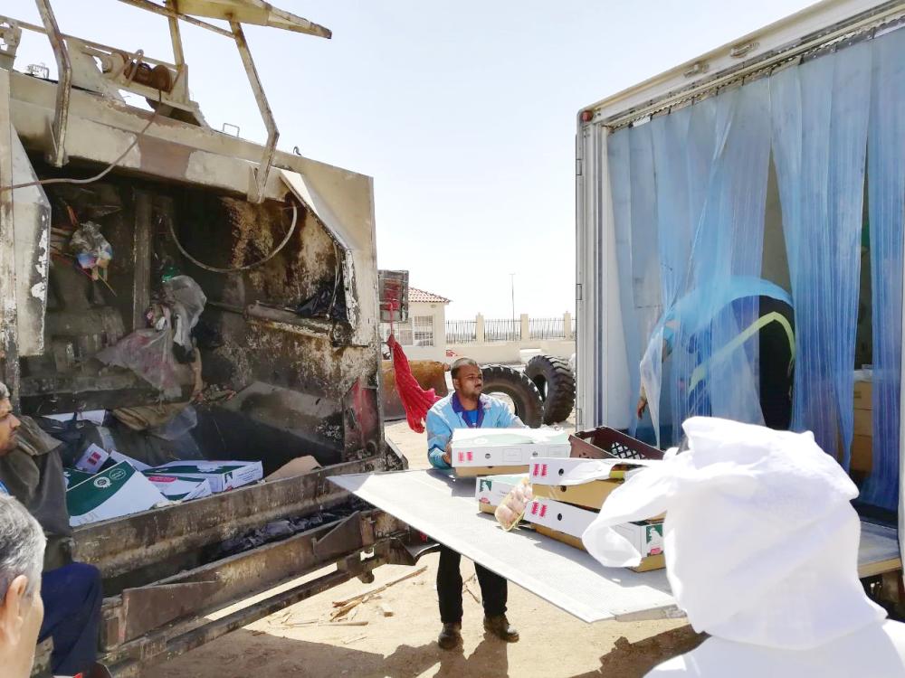 فرق البلدية أثناء ضبط الدجاج الفاسد. (عكاظ)
