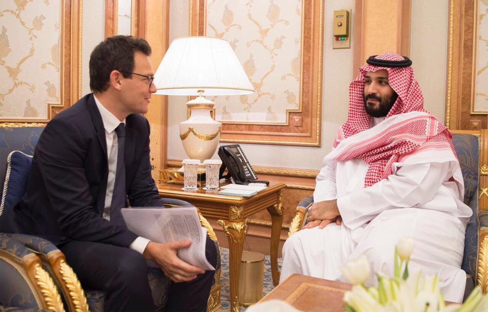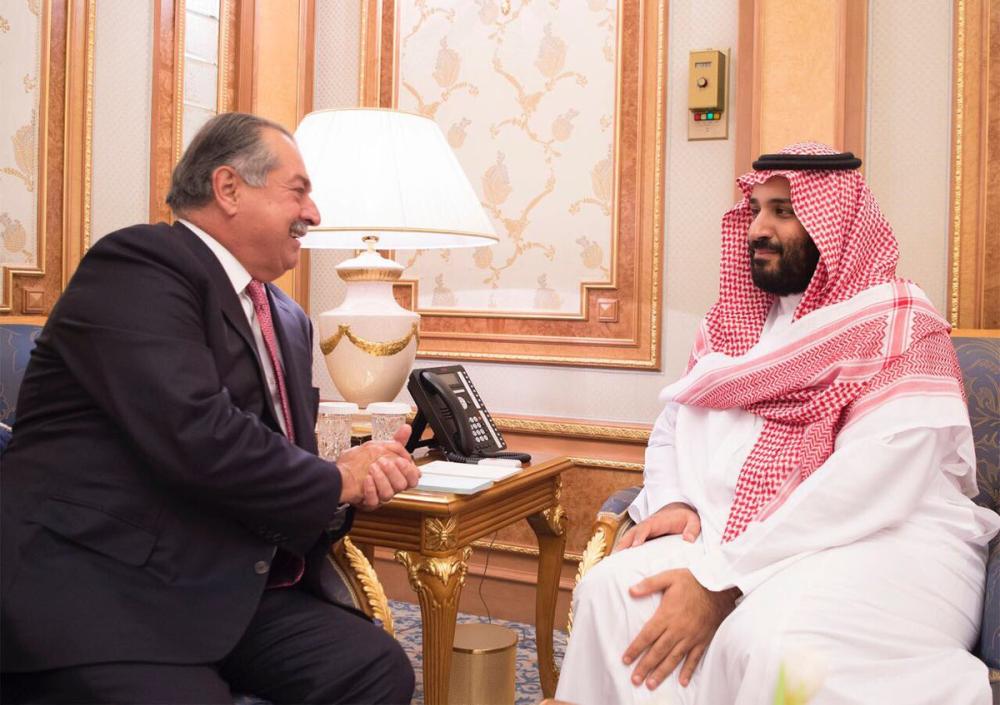 التقى ولي العهد نائب رئيس مجلس الوزراء رئيس مجلس الشؤون الاقتصادية والتنمية، ورئيس مجلس إدارة صندوق الاستثمارات العامة الأمير محمد بن سلمان بن عبدالعزيز على هامش مبادرة مستقبل الاستثمار، مع مسؤولي شركتي «داو» و«اريان».