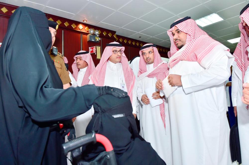 الأمير تركي بن هذلول يطمئن على إحدى المواطنات أثناء جولته.