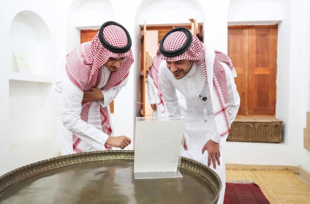 و استمع إلى شرحٍ عن تاريخ هذا البيت، الذي تجول في غرفه، مطلعاً على ما يحويه من تحف فنية ووثائق تسلط الضوء على تاريخ الأحساء، وتوثق مبايعة أهاليها لمؤسس هذه البلاد الملك عبدالعزيز بن عبدالرحمن آل سعود - رحمه الله-، مشدداً على ضرورة الاهتمام بالمعالم الأثرية، التي تكون شاهدةً على الأحداث المهمة، ومنها بيت البيعة، وطالب الجهات المعنية بتعريف المجتمع بهذه الآثار، بوصفها جزءاً مهماً من تاريخ المملكة وتراثها الذي يتميز بتنوعه وعراقته.