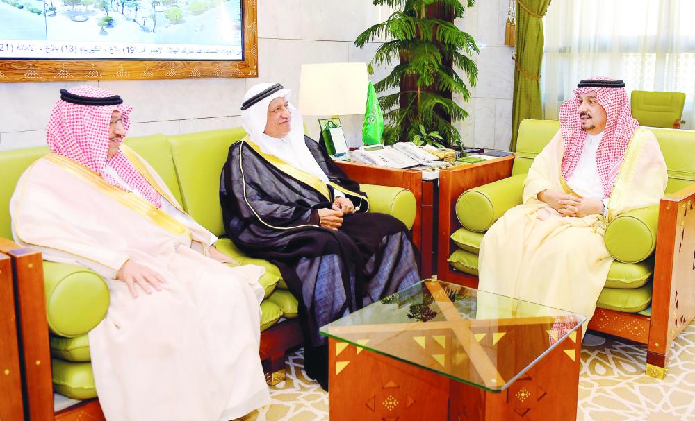 الأمير فيصل بن بندر مستقبلا رئيس مجلس إدارة «سابك» عبدالعزيز الجربوع. (عكاظ)