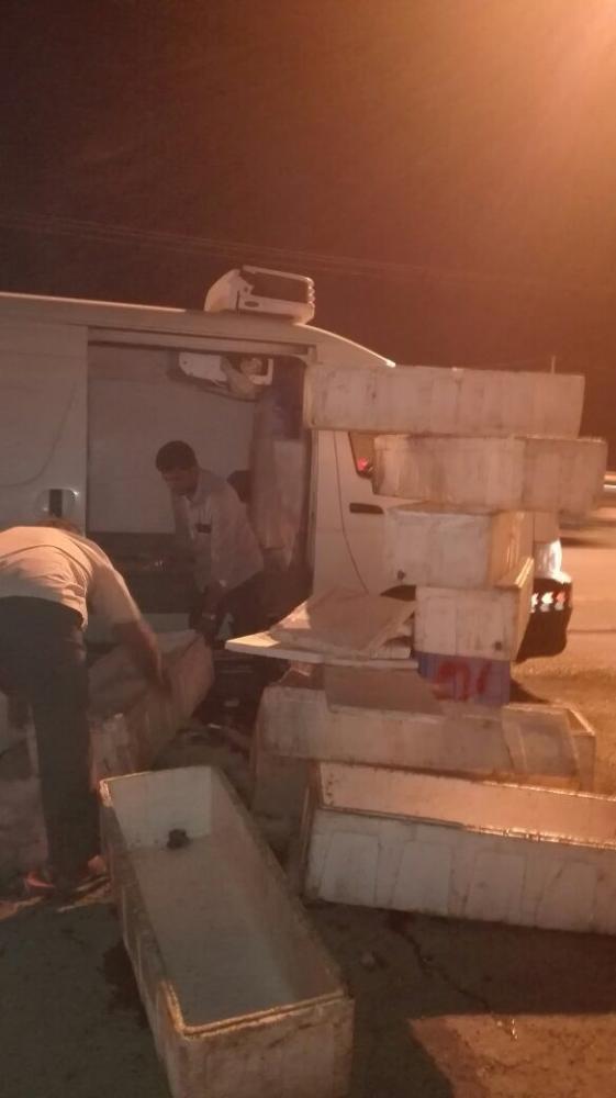 وأوضح مدير إدارة الرقابة الشاملة المهندس هادي آل قريع أنه تم الانتقال لموقع البلاغ حيث تم ضبط سيارة من نوع ميكروباص يقودها وافد محملة بما يقارب 200 ك من الأسماك مجهولة المصدر، حيث ذكر السائق أنه جلبها من منطقة جازان بغرض بيعها على المحلات، وبفحصها من قبل المختصين اتضح فسادها وانبعاث روائح كريهة وتغيّر في لونها وخواصها الطبيعية، وتسييح كمية الثلج في أرضية الثلاجة، بالإضافة إلى أن المركبة المستخدمة مخالفة لاشتراطات نقل اللحوم والأسماك والمواد المبردة، ومعدل التبريد أعلى من المعدل المطلوب بـ 4 درجات مئوية.