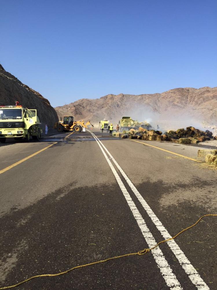 «مدني الشبحة» يخمد حريق شاحنة أعلاف