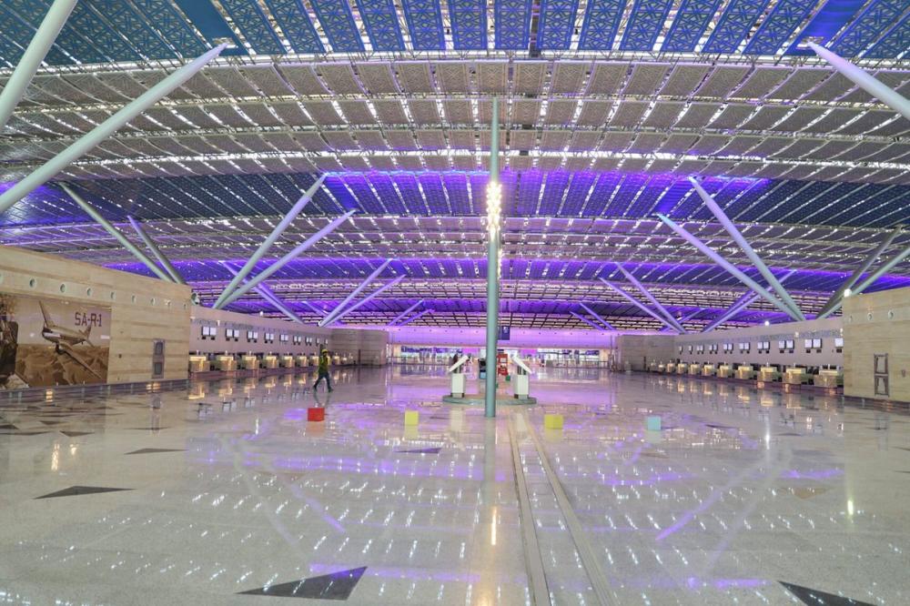 وزار الأمير عبدالله بن بندر مجمع صالات السفر التي تقدر مساحتها الإجمالية بنحو (810.000 م2)، وتعد من أضخم المرافق في المشروع، كما تتيح لجميع الناقلات الجوية العمل تحت سقف واحد، وبعد أن قطع أول تذكرة صعود تجريبية، استمع إلى شرح مفصل عن المشروع الذي سيستوعب أكثر من 30 مليون مسافر سنوياً في مرحلته الأولى، وعلى ما تم إنجازه في المشروع خلال الفترة الماضية، ويشمل مجمع صالات سفر على (220) كاونترا لإنهاء إجراءات السفر و(80) كاونترا للخدمة الذاتية للركاب، ومجمع صالات للاستثمار التجاري تصل مساحتها إلى (27,987 م2)، وفندق من ثلاثة طوابق لركاب الترانزيت يضم 120 غرفة، بالإضافة إلى (81) مصلى داخل مبنى صالات السفر، ونظام متطور لمناولة أمتعة المسافرين يبلغ طول سيوره حوالي 34 كم، ومساحات خضراء داخل الصالات تقدر بـ(18,000 م2).