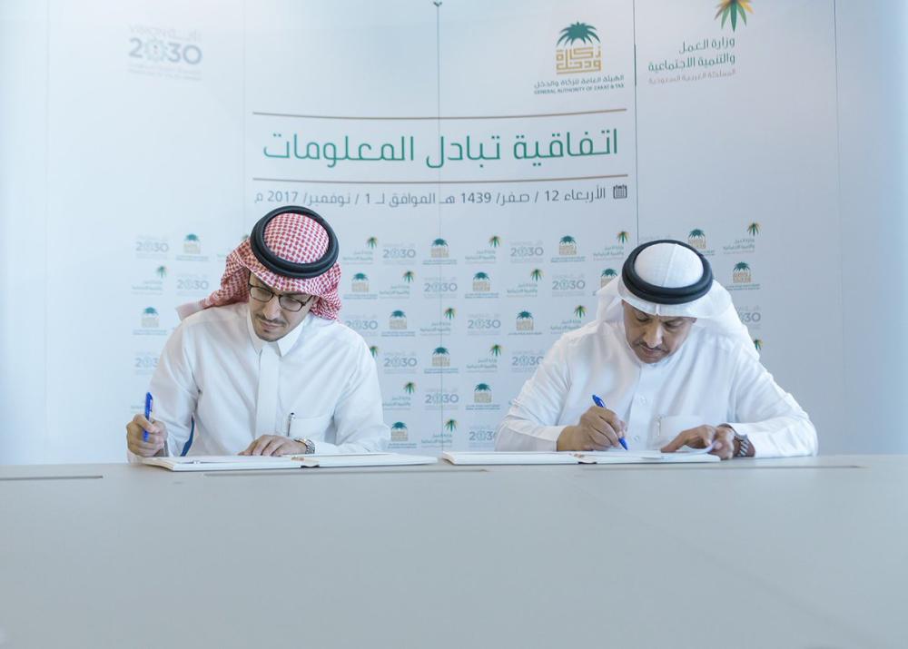 وقعت الهيئة العامة للزكاة والدخل ووزارة العمل والتنمية الاجتماعية اتفاقية تبادل معلومات تهدف إلى التعاون بين الطرفين لتهيئة وتنفيذ الآلية المناسبة التي تسمح لكل منهما من الحصول على البيانات التي يحتاجها في تنفيذ مهامه واختصاصاته.