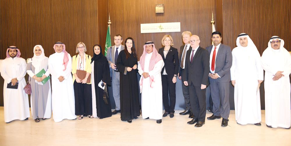 أعضاء وفد البرلمان الأوروبي خلال زيارتهم مركز الملك عبدالعزيز للحوار الوطني. (عكاظ)