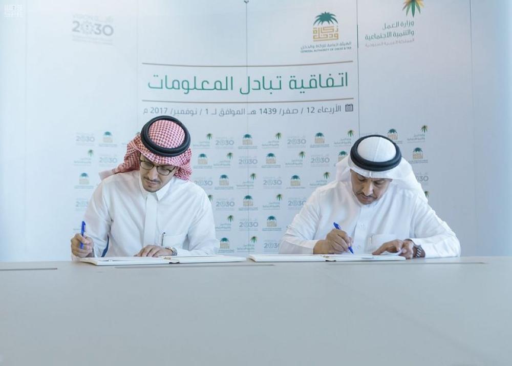 وقعت الهيئة العامة للزكاة والدخل، ووزارة العمل والتنمية الاجتماعية، اتفاقية تبادل المعلومات بينهما، تهدف إلى التعاون بين الطرفين لتهيئة وتنفيذ الآلية المناسبة التي تسمح لكل منهما بالحصول على البيانات التي يحتاجها في تنفيذ مهامه واختصاصاته.