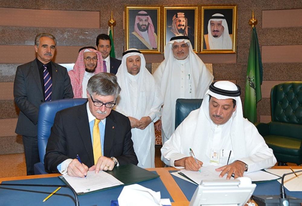 رعى مدير الجامعة الملك عبدالعزيز الدكتور عبدالرحمن بن عبيد اليوبي توقيع اتفاقية تعاون مشترك بين كلية الطب بالجامعة والكلية الملكية الكندية، وذلك أمس (الأحد) 16 /2 /1439هـ، بحضور وكيل الجامعة الدكتور عبدالله بن مصطفى مهرجي، ووكيل الجامعة للدراسات العليا والبحث العلمي الدكتور يوسف بن عبدالعزيز التركي.