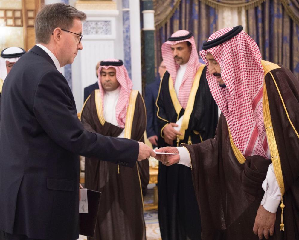 تسلم خادم الحرمين الشريفين الملك سلمان بن عبد العزيز، في مكتبه بقصر اليمامة، اليوم (الاثنين)، أوراق اعتماد عدد من سفراء الدول الشقيقة والصديقة، سفراء معتمدين لدولهم لدى المملكة.