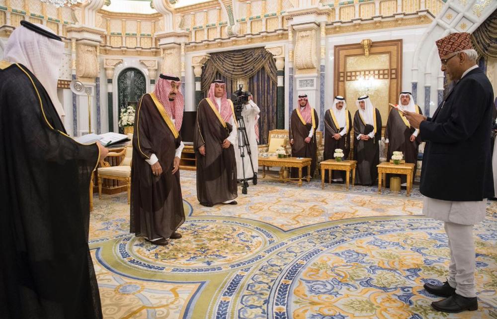 حضر مراسم تسليم أوراق اعتماد السفراء، وزير الداخلية الأمير عبدالعزيز بن سعود بن نايف بن عبدالعزيز، ووزير الدولة عضو مجلس الوزراء الدكتور مساعد بن محمد العيبان، ووزير الخارجية عادل بن أحمد الجبير، ووزير الدولة عضو مجلس الوزراء رئيس الديوان الملكي الأستاذ خالد بن عبدالرحمن العيسى، ورئيس المراسم الملكية خالد بن صالح العباد، ورئيس الحرس الملكي الفريق أول ركن سهيل بن صقر المطيري، ووكيل وزارة الخارجية لشؤون المراسم عزام بن عبدالكريم القين.