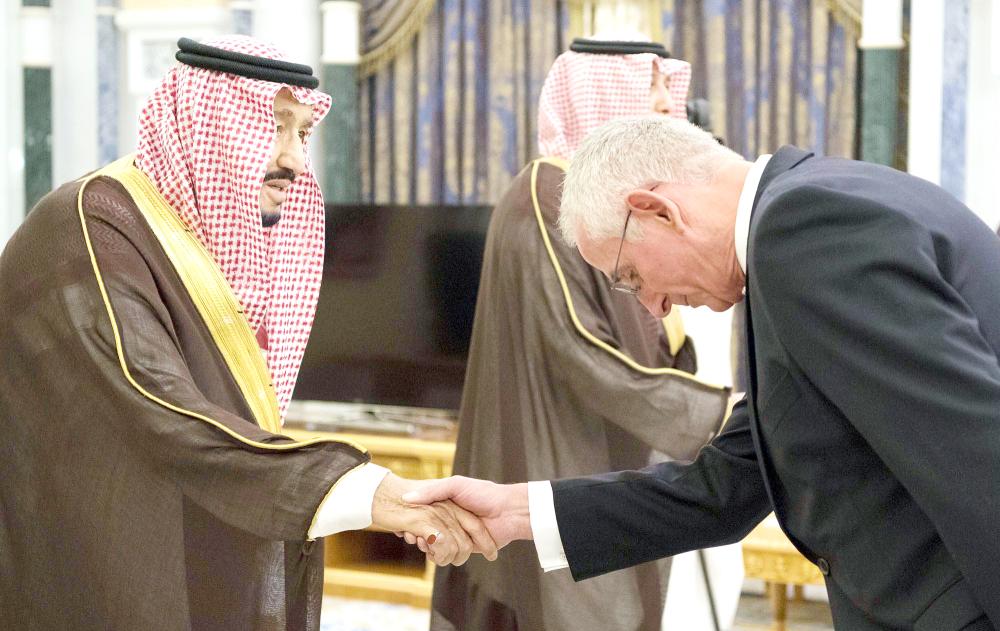 فقد تسلم الملك سلمان أوراق اعتماد كل من، سفير جمهورية مالطا رايمون سارسيرو، وسفير جمهورية موريشيوس محمد أقبال لاتونا، وسفير جمهورية باكستان الإسلامية خان هشام بن صديق، وسفير جمهورية نيبال الديموقراطية الفيدرالية الدكتور ماهيندارا سينغ راجبوت، وسفير جمهورية بنما غير المقيم إدواردو فونيسكا، وسفير جمهورية بنين فاضلوا موتانرو، وسفير جمهورية غانا طاهر بيمبالي دامبا، وسفير المملكة الأردنية الهاشمية علي حسن الكايد، وسفير مملكة النرويج أويفند ستوكه، وسفير مملكة الدنمارك أوله موسبي، وسفير الجمهورية الإسلامية الموريتانية حمادي ولد أميمو، وسفير دولة الإمارات العربية المتحدة الشيخ شخبوط بن نهيان آل نهيان.