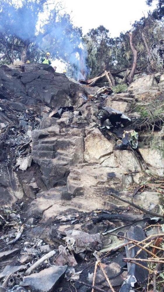 ورصدت فرق الدفاع المدني عقب سقوط الطائرة تصاعد سحب من الدخان في موقع الحادثة، فيما ظهر حطام الطائرة متناثرا على مسافات متقاربة، وشكل فريق للتحقيق من قبل الجهة المختصة في وزارة الدفاع، التي تعود لها الطائرة. والمكان الذي سقطت فيه، منطقة سحيقة يصعب النزول إليها، وذات تضاريس جبلية صعبة، وجرى انتشال جثامين الشهداء ونقلها إلى مستشفى عسير المركزي، إذ أغلق لدواعي التحقيق وإنهاء إجراءات تسليم الجثامين.