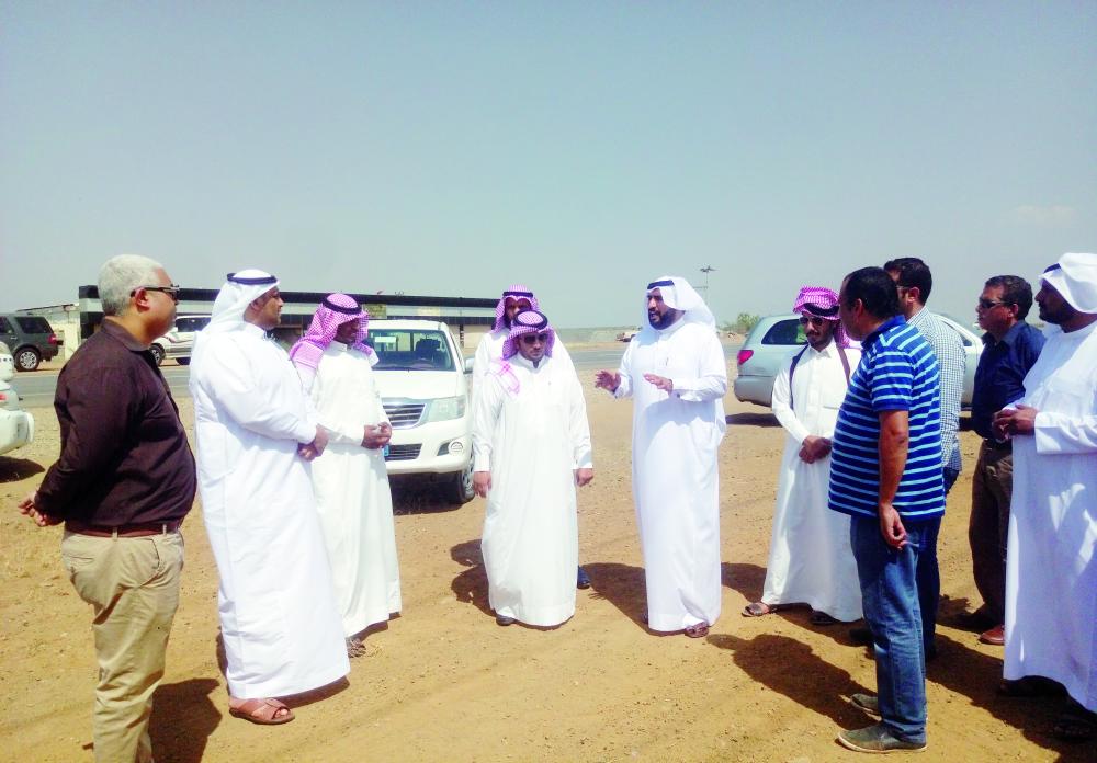 السهيمي ومحافظ الحرث خلال الزيارة. (عكاظ)