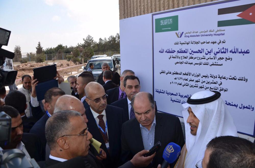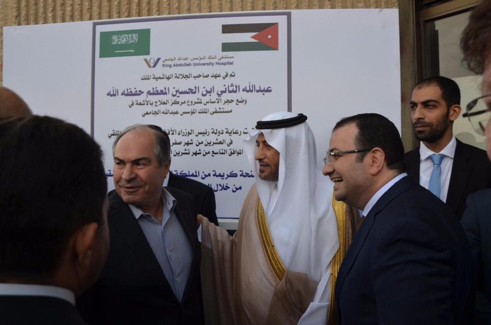 افتتح رئيس الوزراء الأردني هاني الملقي وسفير خادم الحرمين الشريفين لدى الأردن الأمير خالد بن فيصل بن تركي آل سعود مشروع إنشاء مركز العلاج بالأشعة في مستشفى الملك المؤسس عبدالله الجامعي، الممول بمنحة المملكة من خلال الصندوق السعودي للتنمية بقيمة 12 مليون دولار خصصت لإنشاء وتجهيز هذا المركز.