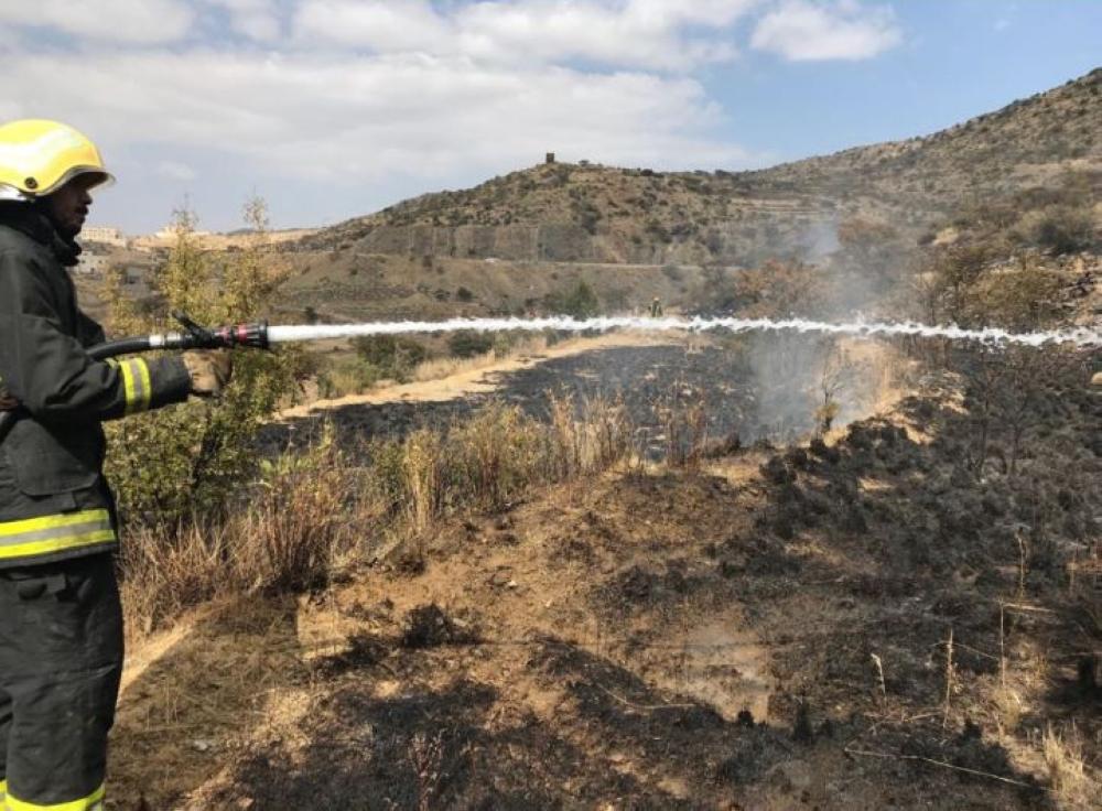 «مدني أبها» يواصل إخماد حريق على مساحة 100 ألف متر