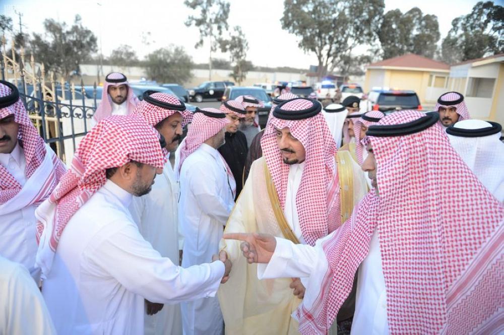 وكان في استقباله لدى وصوله مقر عزاء الفقيد في حي الرونة بمحافظة خميس مشيط اليوم، محافظ خميس مشيط خالد بن عبدالعزيز بن مشيط وشيخ شمل قبائل شهران سعيد بن حسين بن مشيط ، ووالد الفقيد صالح بن سعيد بن زبن الشهراني وذوي الفقيد وعدد من نواب وأعيان المنطقة .