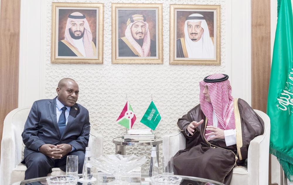 وزير الخارجية مستقبلا النائب الثاني لرئيس بوروندي أمس في الرياض. (واس)