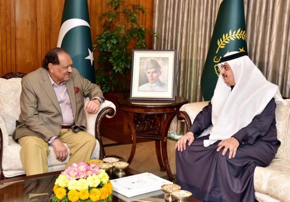 استقبل الرئيس ممنون حسين رئيس جمهورية باكستان الإسلامية في القصر الرئاسي بإسلام آباد الليلة الماضية سفير خادم الحرمين الشريفين لدى باكستان نواف بن سعيد المالكي.