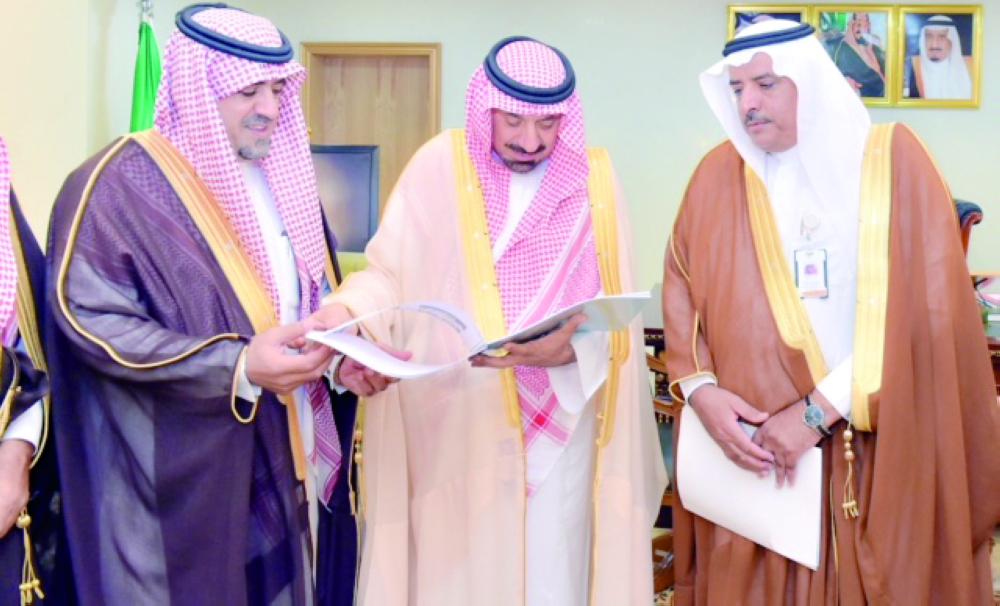 الأمير جلوي بن عبدالعزيز يطلع على التقرير المصوّر عن مهرجان محافظة ثار. (عكاظ)