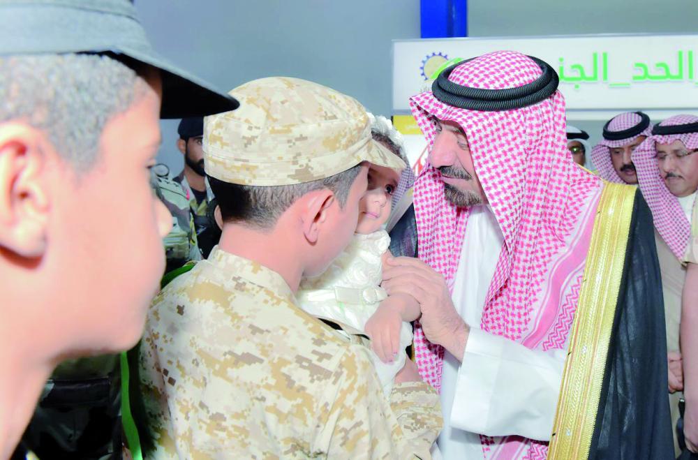 وقال أمير نجران: «لن تكفي الساعات مهما تعددت الألسن، ولن تكفي الصفحات مهما تعددت الأقلام في وصف هؤلاء الرجال، الذين تسلحوا بالإيمان أولا، وأخلصوا ونذروا أنفسهم لحماية الدين والدفاع عن المقدسات، وصون العروبة، وحراسة القيم ومكارم الأخلاق، فهم مصدر أمننا وأماننا، وعزتنا ورفعتنا»، مضيفا: «يلازم هؤلاء الرجال شعب أبيّ عظيم، وفيّ كريم، سطروا أعظم ملحمة في الصمود من أجل الوطن، وفي حب الوطن، وفي مساندة ومؤازرة جنود الوطن».