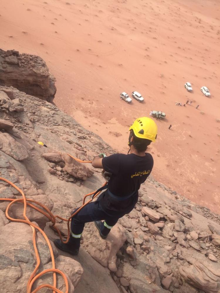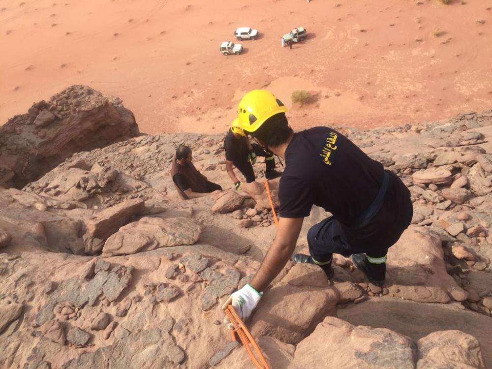 «مدني تبوك» ينقذ شخصاً علق في أحد الجبال بمركز بجدة