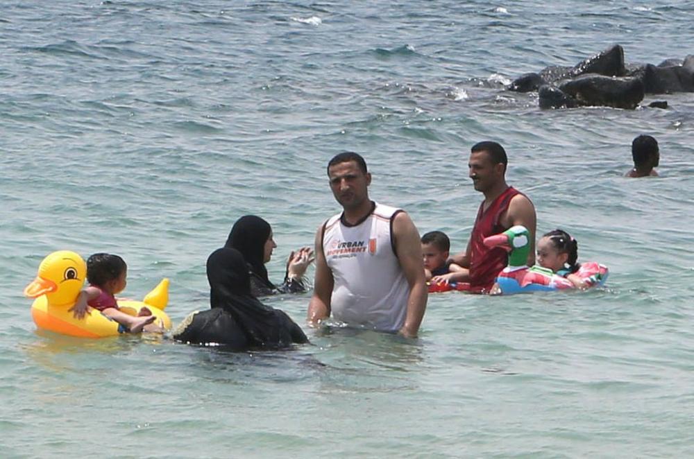 أسرة تمارس السباحة في كورنيش جدة. (تصوير: موسى الأحمري ).