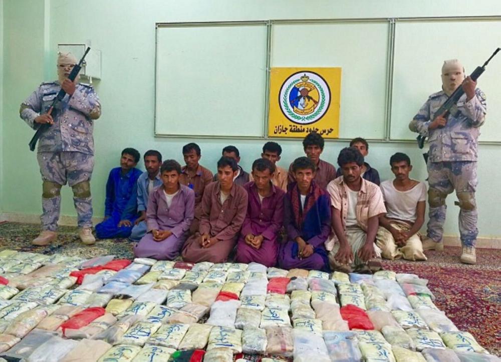 من 22 - 1439/2/29 من ضبط 15 متسللاً من الجنسية اليمنية ومتسلل إثيوبي الجنسية، أثناء محاولتهم تجاوز الحدود السعودية وبحوزتهم كميات كبيرة من المخدرات، بلغت 963 كيلوغراما و185 غراماً من الحشيش».