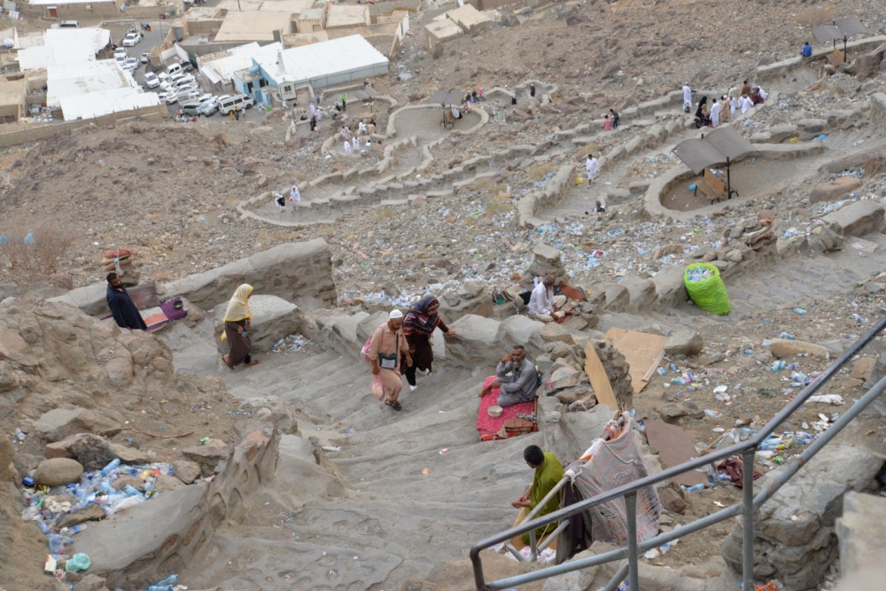 جولة «عكاظ» صورت المشهد على الجبل، ووثقت كل الخطوات من أسفله وحتى أعلى قمته، وكيفية تربص المتسولين بالزوار واستنزاف جيوبهم، مستغلين تعلقهم بهذا المعلم التاريخي.