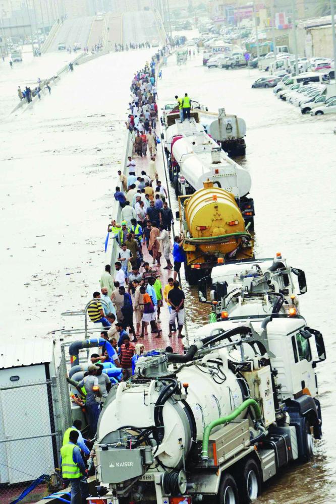 وأكدت مصادر «عكاظ» أن كميات مياه الأمطار التي تم نزحها من شوارع وأنفاق المدينة حتى أمس بلغت ملايين الأمتار المكعبة، إضافة إلى تفريغ المياه من سبعة أنفاق من أصل 14 نفقا في جدة. وأوضحت أن شبكة تصريف مياه الأمطار الحالية في أحياء جدة، لم تكتمل وتعد محدودة مقارنة مع توسع وتمدد المدينة. إذ إن أمانة جدة مكلفة فقط بصيانة وتشغيل الشبكة الحالية والبالغ نسبتها 30% المشمولة بها أحياء جدة، إضافة إلى سحب المياه الناجمة عن هطول الأمطار من الشوارع والمناطق غير المشمولة بشبكة تصريف مياه أمطار باستخدام المضخات والصهاريج وتنظيف ورفع المخلفات بعد انتهاء هطول الأمطار، وتقوم الأمانة بهذه المهمة وفق الخطة المعلن عنها، ويشرف عليها مركز الأزمات والكوارث بإمارة منطقة مكة المكرمة.
