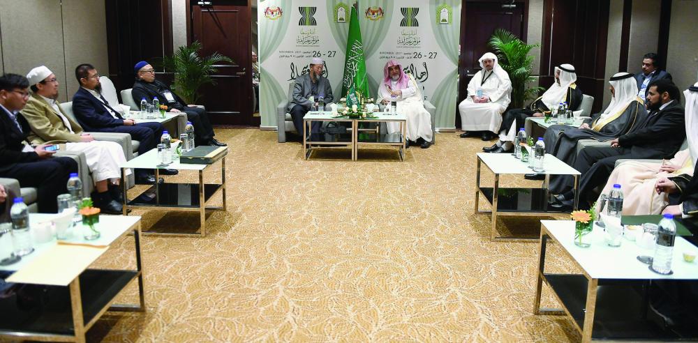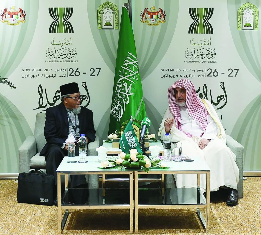 أوضح آل الشيخ أن خدمة الحرمين الشريفين هي خدمة للمسلمين، بمعنى أننا نشعر أن رسالة خدمة الحرمين هي خدمة لكل مسلم، وهذا يتطلب التعاطي مع مذاهب المسلمين واتجاهاتهم تعاطيا إيجابيا بالمحبة والوئام والتقدير والرعاية بالتفاهم والحوار، وأن نجعل الاختلافات بين المسلمين عنصرا إيجابيا لا عنصرا سلبيا، وبعض الناس جعلوا الخلافات مصدرا للتفريق بين الأمة، ونحن في السعودية ننظر لها على أنها صورة موجودة، والله -جل وعلا- هو الذي خلق الناس هكذا وجعل المسلمين على مذاهب، وهذا التنوع إن لم نجعله إيجابيا صار سُوءا عليهم. وقال: «إن وزارة الشؤون الإسلامية والدعوة والإرشاد حظيت بتنظيم لقاءات ومؤتمرات عدة بعنوان: «خير أمة» تحت شعار: «أمة وسطا»، وهذه هي الدورة الأولى في بلاد منظومة آسيا في مملكة ماليزيا، وهذا يجسد أن الشراكة الحالية بين المملكة وماليزيا هي شراكة تهدف لمصلحة أمة الإسلام ولمصلحة جمع الكلمة».
