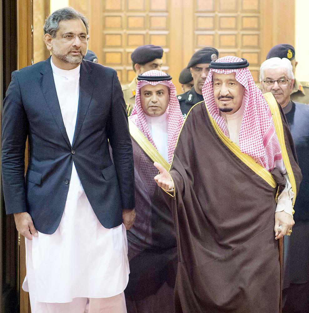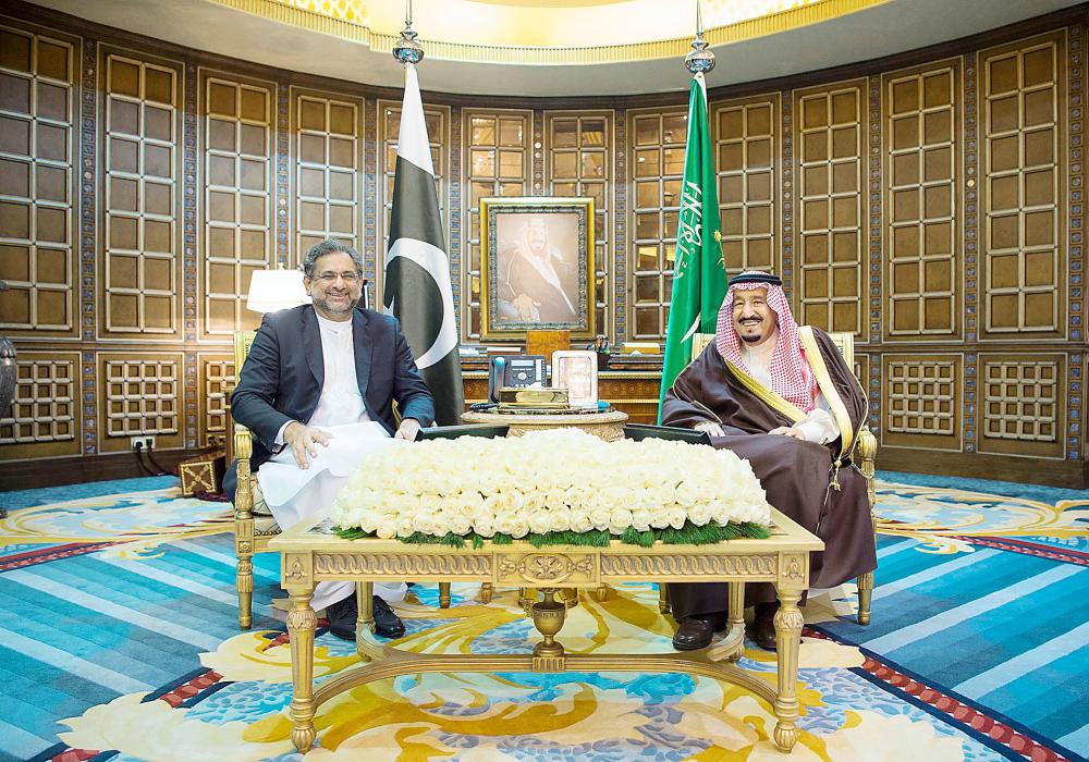 عقد خادم الحرمين الشريفين الملك سلمان بن عبدالعزيز في قصره بالرياض أمس، جلسة محادثات مع رئيس وزراء جمهورية باكستان الإسلامية شاهد خاقان عباسي، جرى خلالها استعراض العلاقات الثنائية بين البلدين الشقيقين، ومستجدات الأوضاع في المنطقة.