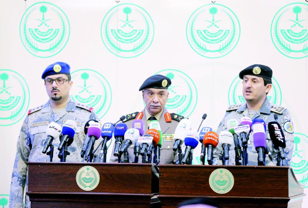 وقال القحطاني: «في ما يخص المتفجرات، تمكنت قوات حرس الحدود من ضبط 46 لغماً، و21 قنبلة شديدة الانفجار، وثماني قذائف آر بي جي، و21 عبوة ناسفة».