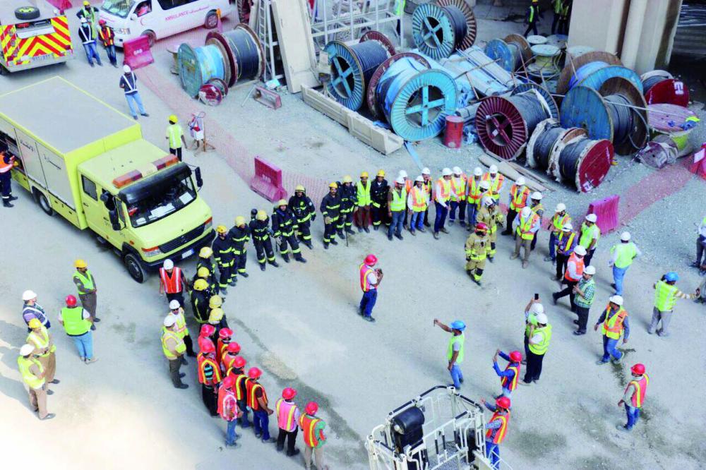 وتكونت فرضيات الطوارئ من ثلاث حالات مختلفة في موقع واحد (حريق افتراضي في أدوار عالية تحت الإنشاء، واحتجاز عاملين، وسقوط سقالات).
