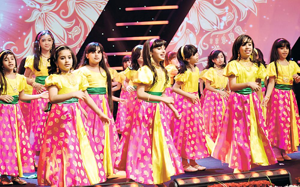 طفلات يحتفلن باليوم الوطني للإمارات باستعراضات فلكلورية.