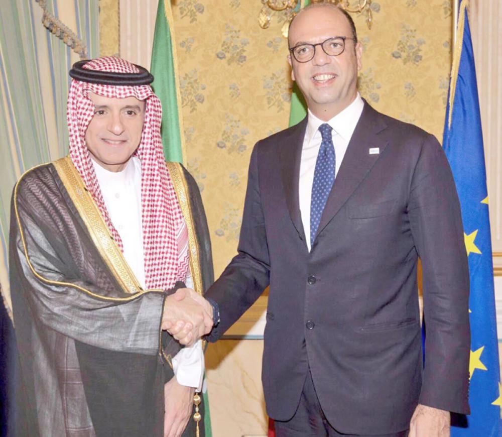 الجبير ملتقيا وزير الخارجية الإيطالي في روما أمس. (واس)