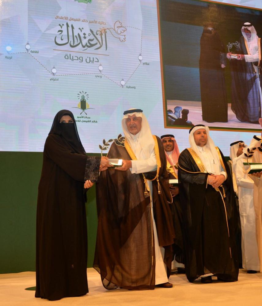 وقال لدى تكريمه اليوم (الأحد) الفائزين بجائزة خالد الفيصل للاعتدال، في الحفلة المقامة بقاعة الملك فيصل للمؤتمرات في جامعة الملك عبدالعزيز بجدة، «ما وصل إليه المركز منذ أن كان كرسيا وحتى اليوم يعد خطوات جيدة ومباركة تشكر عليها جامعة الملك عبدالعزيز التي بذل القائمون عليها عملا جادا لتصل الجائزة والمركز إلى هذا المستوى الذي نشهده اليوم، وأسأل الله تعالى أن يستمر هذا التقدم وهذه الروح الطموحة».